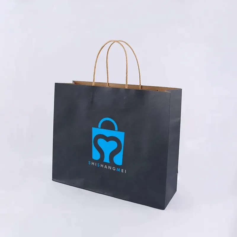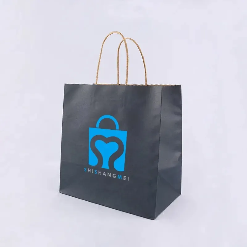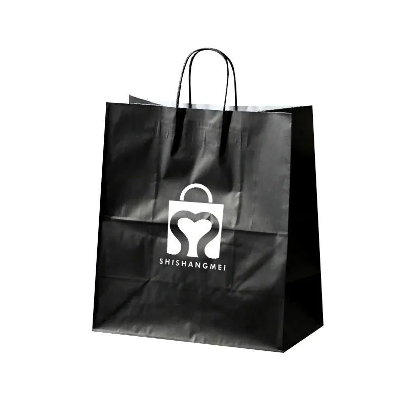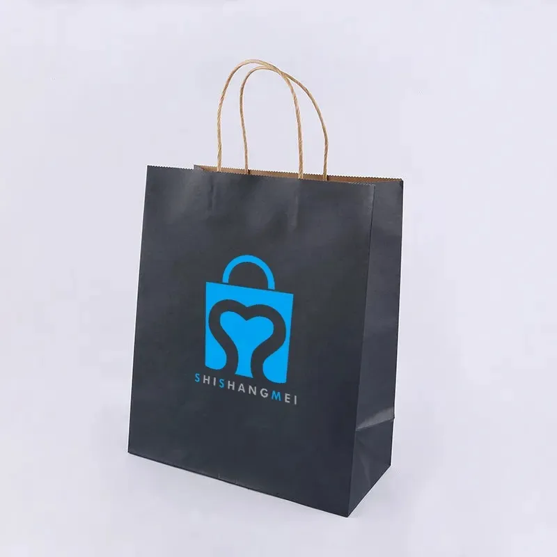 Maßgeschneiderte schwarze Großhandels-Restaurant-Mittagessen zum Mitnehmen tragen Einkaufsverpackungsbeutel aus Kraftpapier